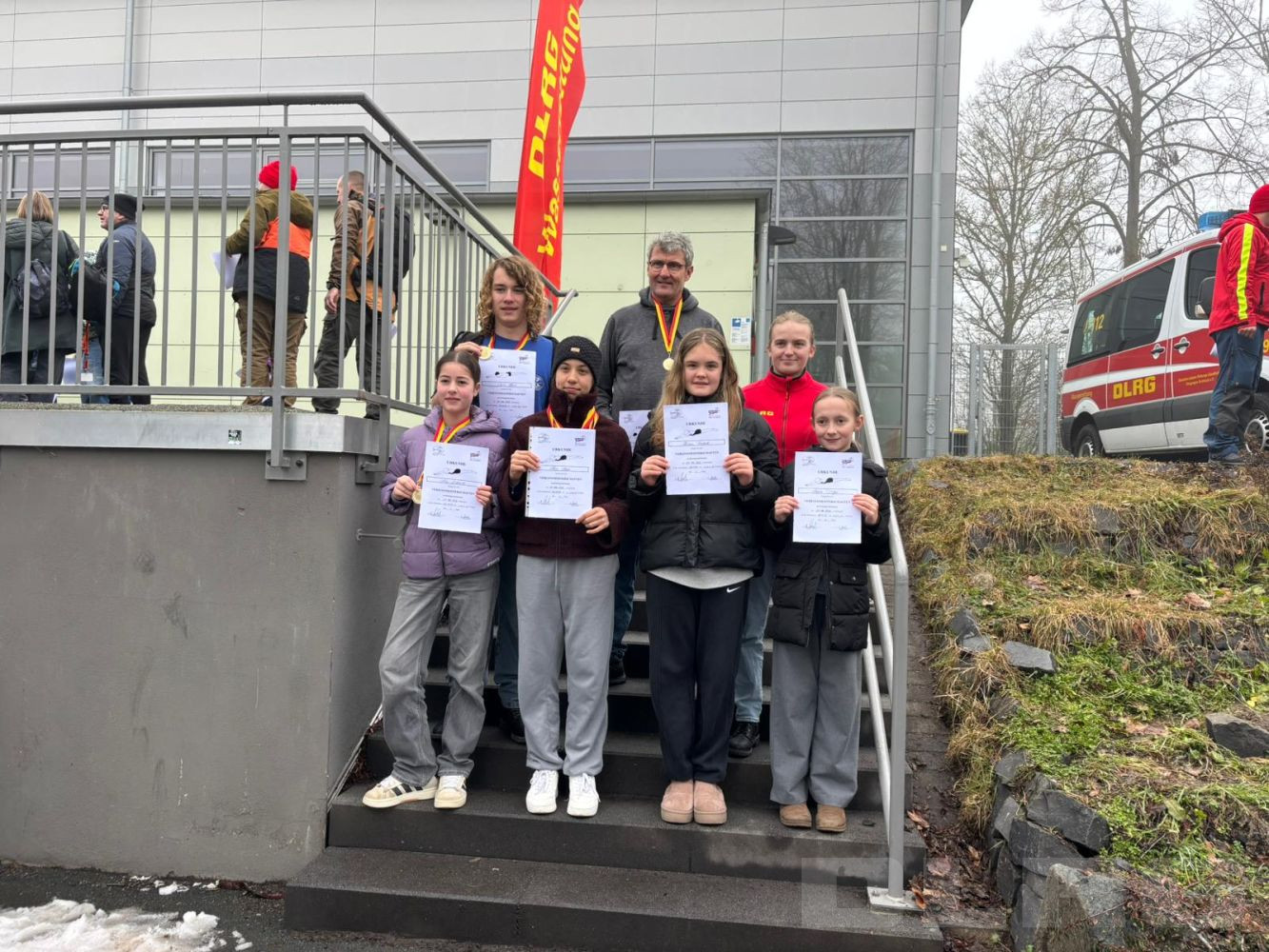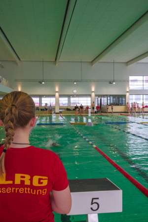 Nach einem gemeinsamen Einschwimmen und einer kurzen Einweisung durch eine erfahrene Schwimmerin aus Butzbach begann um 9 Uhr der Wettkampf. Obwohl unsere Teilnehmenden noch keine Wettkampferfahrung hatten, starteten sie mit viel Elan und Teamgeist in den Tag. Eingeteilt in Altersklassen, meisterten sie jeweils mindestens drei Disziplinen: Von Freistil, Schleppen einer Puppe, Hindernisschwimmen, Schleppen einer Puppe mit Flossen bis zu Retten mit einem Gurtretter.